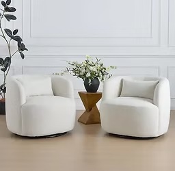 KINWELL 34″ Wide Boucle Fabric Upholstered Swivel Armchair (Set of 2)